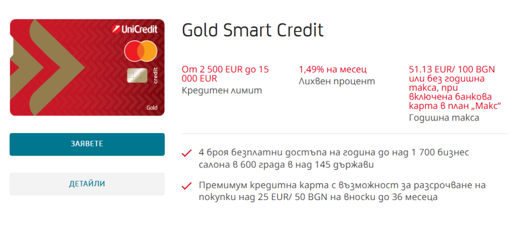 Кредитните карти на UniCredit предлагат бонуси като кешбек. Също така точки, които може да събирате, и застраховки за пътуване. Добре е да сравните таксите с това, което ви предоставят тези карти.