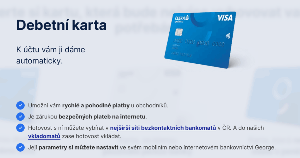 - Kartu převezmete na pobočce nebo vám přijde poštou (PIN obvykle zvlášť nebo si nastavíte ePIN v Georgi/na bankomatu).