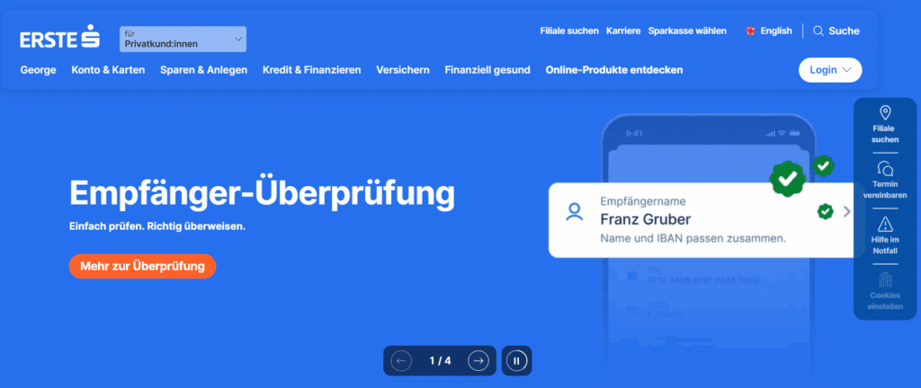 - Besuchen Sie die Website der Erste Bank oder Sparkasse