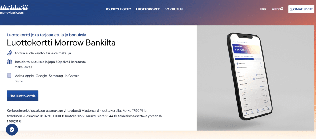 Morrow Bank Mastercard sopii erityisesti matkustajille ja verkkokaupan käyttäjille. Se on hyvä valinta niille, jotka haluavat hyötyä cashback-eduista.
