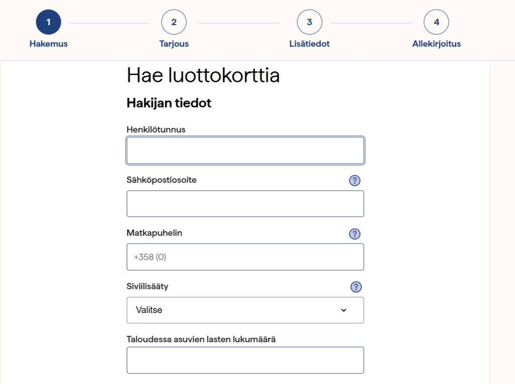 - Toivottu luottoraja: Valitse summa, joka vastaa tarpeitasi ja maksukykyäsi.