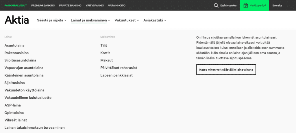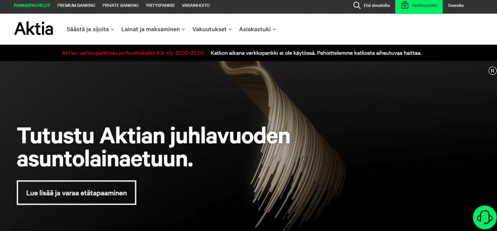 • Tiedot nojaavat Aktian palveluihin ja yleisiin pankkikäytäntöihin.
