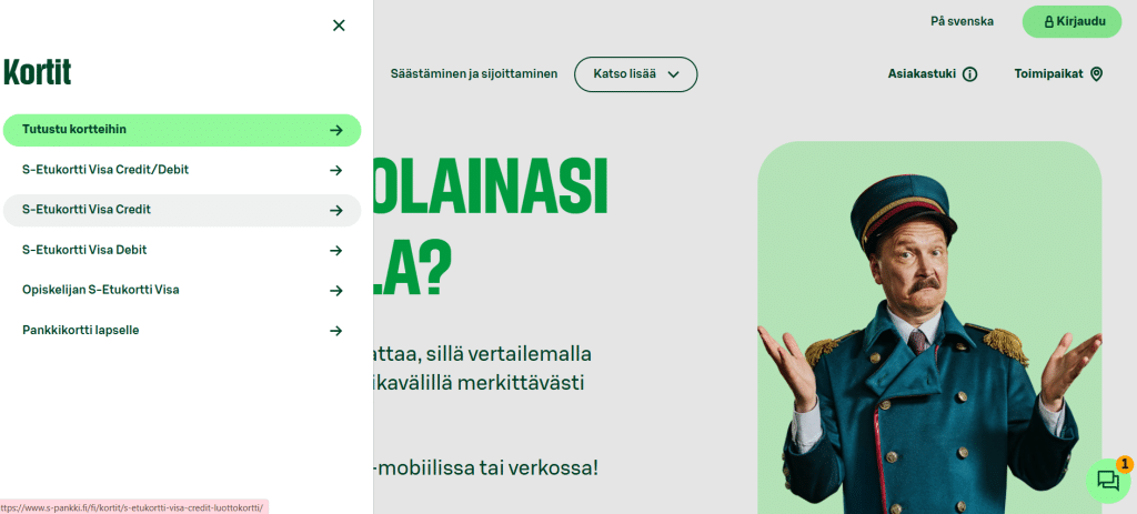 - Tarkista kelpoisuusvaatimukset S-Bank luottokortti haku -sivulta etukäteen.