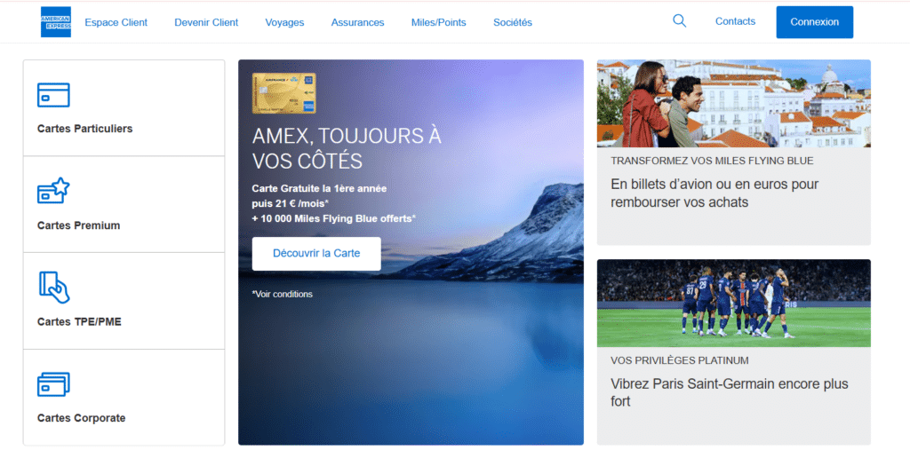 Rendez-vous sur le site officiel d’American Express France : www.americanexpress.com/fr.
