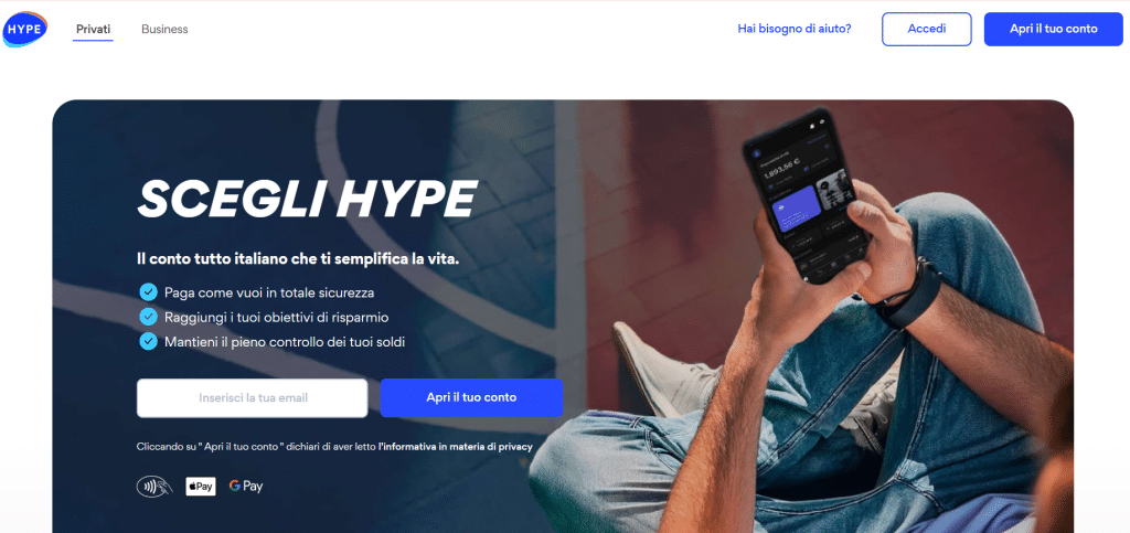 - Adatta per pagamenti online, prelievi e per ricevere bonifici in Hype Italia.