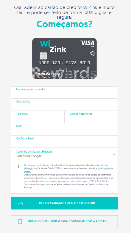 💡 Dica: mesmo que não tenha conta no WiZink, pode fazer o pedido — o banco é totalmente digital e aceita clientes de qualquer instituição nacional.